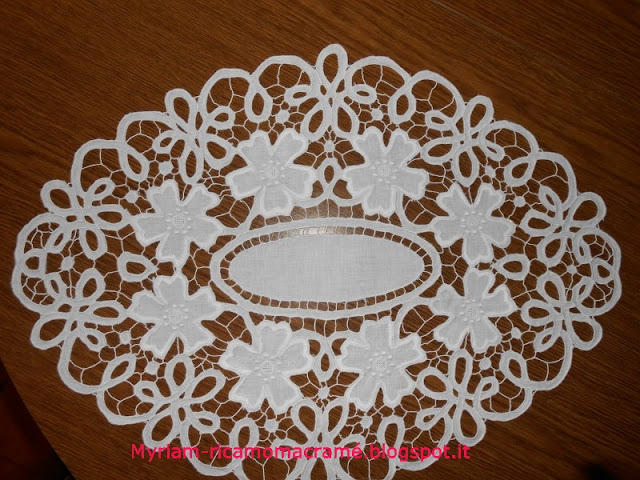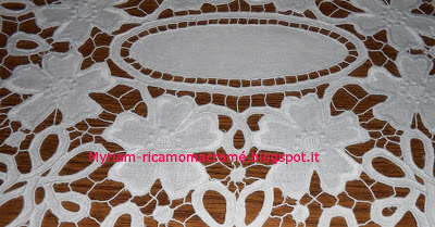 Volevo mostrarvi questo centro, con la tecnica del ricamo d'Angles eseguito "a quattro mani".......
