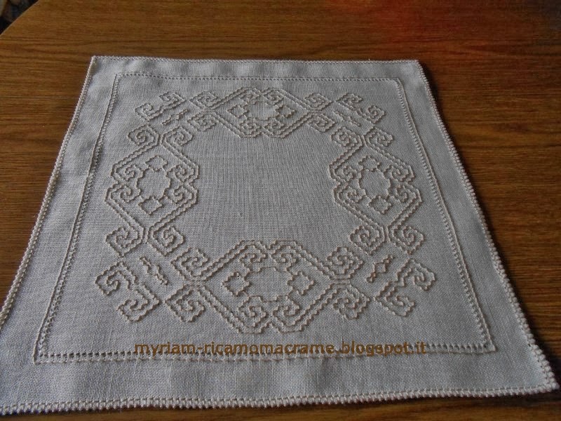 Avevo capito che il disegno che ci aveva spedito era da ripetere nei due lati.... e così mi sono trovata a corto di stoffa per fare l'orlo !!!