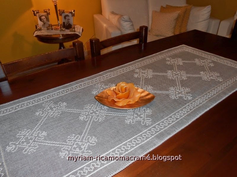 Ho ripreso un disegno già eseguito per un centro quadrato e variato un po per adattarlo a una corsia da tavolo, ecco il risultato :